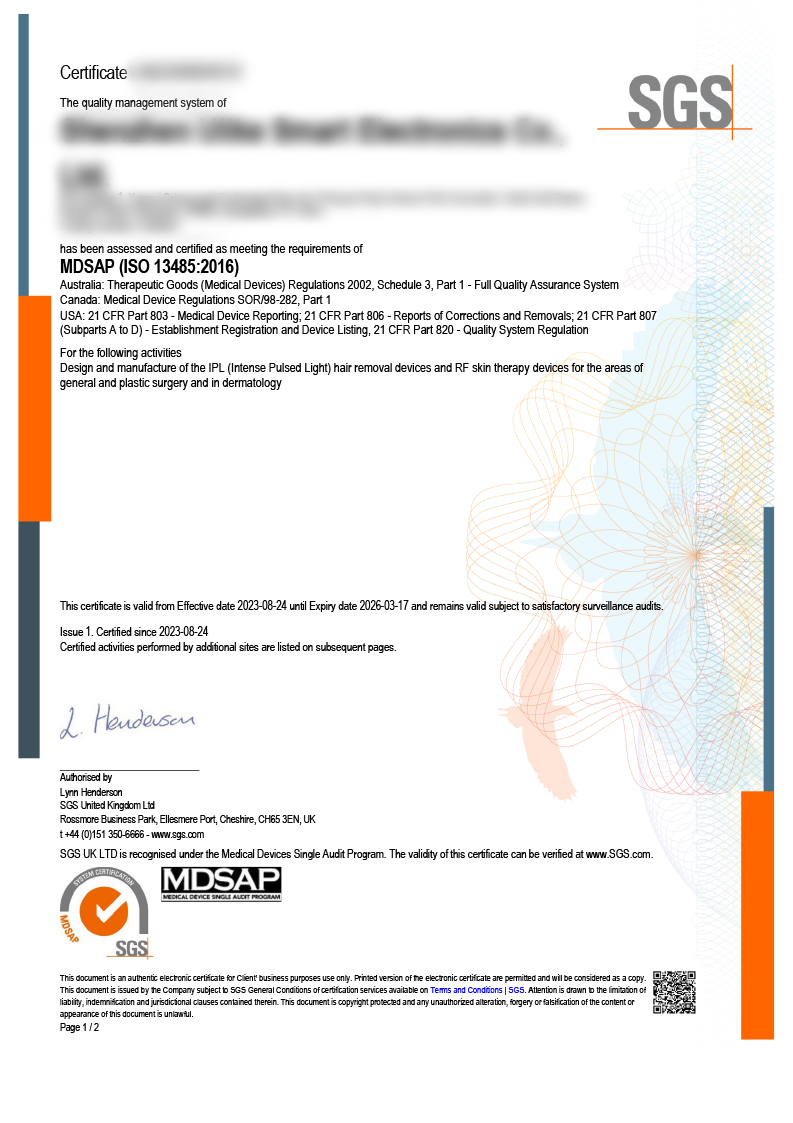 產(chǎn)品的范圍包括了IPL脫毛儀與射頻皮膚治療儀設(shè)備。整個(gè)輔導(dǎo)周期為3.5個(gè)月,同步過程中還輔導(dǎo)了KGMP體系。通過我司合理的體系輔導(dǎo)規(guī)劃,派駐了三名體系咨詢師現(xiàn)場(chǎng)輔導(dǎo),順利在客戶期望的周期內(nèi)完成了準(zhǔn)備與審核,并順利獲得證書。